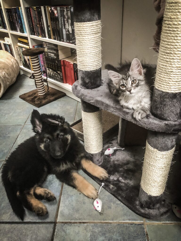Met de komst van Arya en Sansa in 2019 groeide mijn interesse in voedzame, natuurgerichte voeding nog meer; ik maakte niet veel later de overstap van brok en deels vlees naar volledig vers voer (KVV) en bleef intensief lezen en leren erover en ook steeds meer aanvullende dingen in de praktijk te brengen. MAar het bleef nog steeds knagen: ik wilde meer diepgaandere, betrouwbare kennis opdoen om mijn dieren nog beter (preventief) te ondersteunen en gaandeweg kwam de droom om hier ook mijn beroep van te kunnen maken: om andere eigenaren concreet en verantwoord te kunnen helpen in alles wat met voeding te maken heeft. Daarom volg ik nu een opleiding tot Integraal voedingstherapeut voor honden en katten via Kelly Cogen.